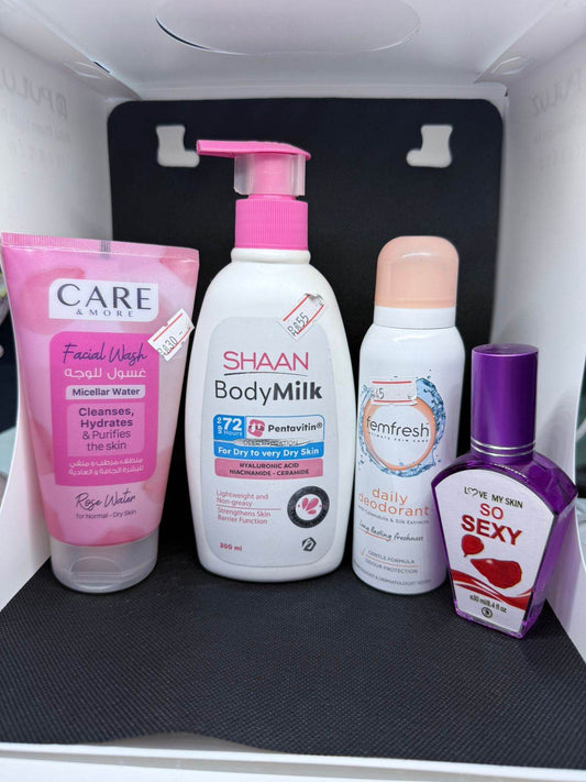 مجموعة العناية الأنثوية - غسول الورد + حليب الجسم ...