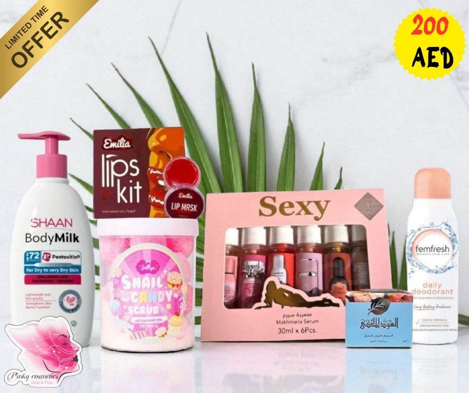 تألقي ببشرة مشرقة من الرأس إلى القدمين مع مجموعة العناية الكاملة بالبشرة والجسم ، وهي مجموعة تجميل 6 في 1 غنية بأساسيات تنعيم البشرة وترطيبها وإنعاشها. من حليب الجسم ومقشراته إلى العطور وأقنعة الشفاه، هذه المجموعة الشاملة مثالية للدلال اليومي أو كهدية مميزة لشخص عزيز.