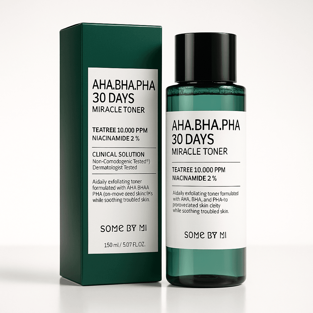 💎 تونر Some By Mi AHA BHA PHA المعجزة لـ 30 يومًا - حل كوري فعال للعناية بالبشرة يجمع بين ثلاثة أحماض لطيفة لتقشير البشرة وتنعيمها وتحسين مظهرها في 30 يومًا فقط. مثالي لمن يُقدّرن العناية بالبشرة الفعالة والمدعومة علميًا بنتائج ملموسة.