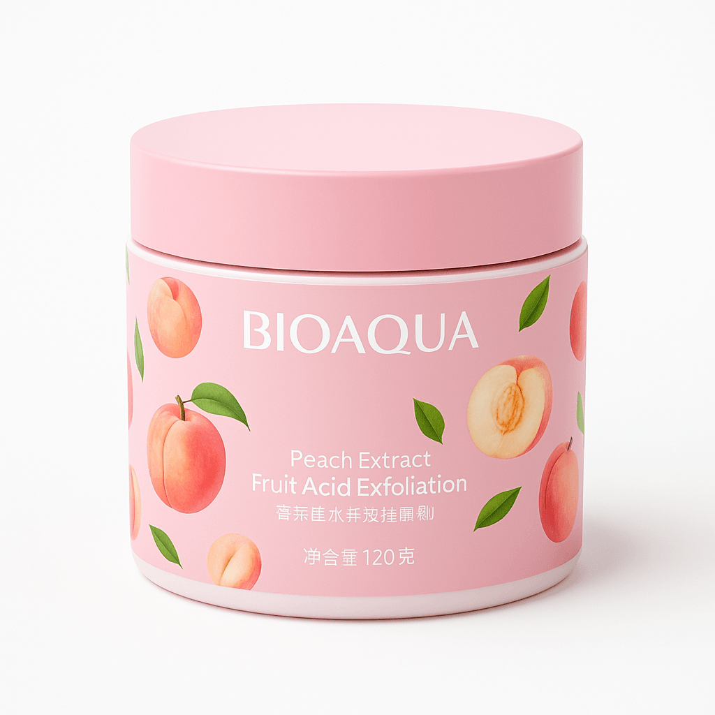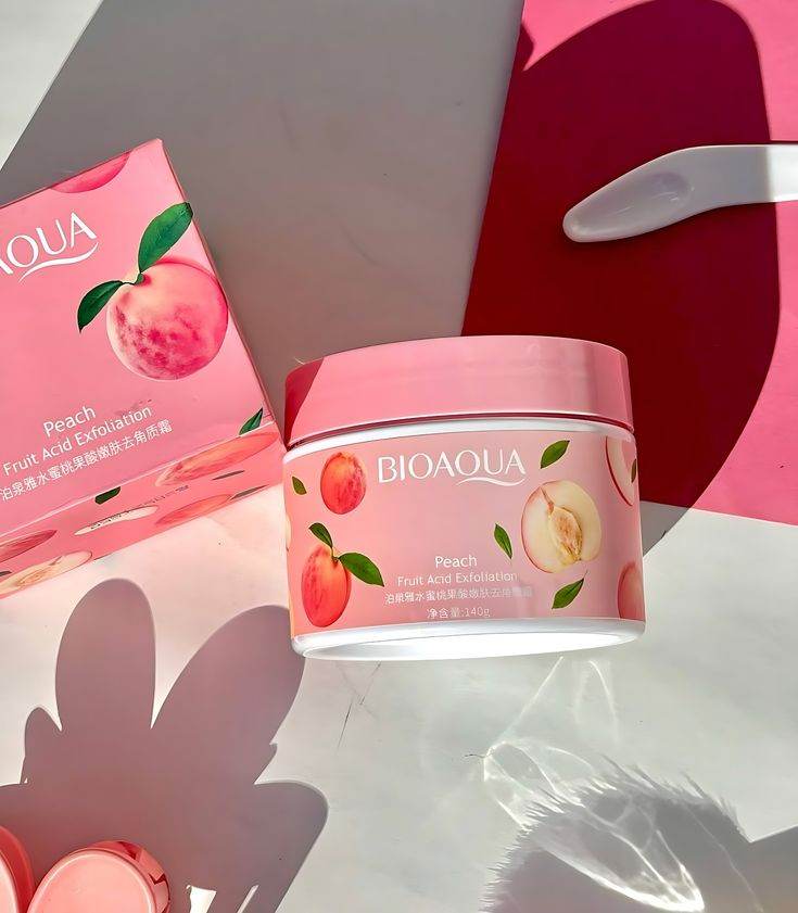ودّعي بشرتكِ الباهتة والخشنة. دللي بشرتكِ اليوم بنضارة الفواكه مع مقشر الخوخ من بايوأكوا!