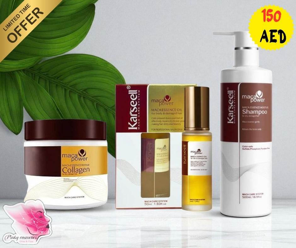 مجموعة كارسيل ماكا باور للعناية بالشعر - قناع الكولاجين، شامبو وزيت
