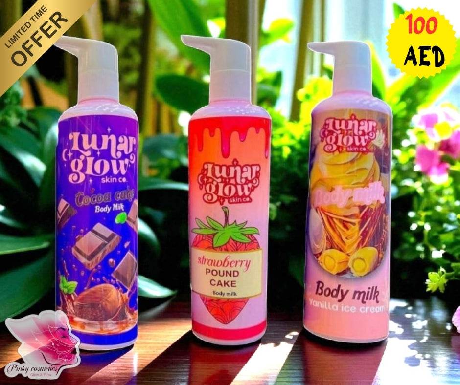 رطبي بشرتكِ ودللي حواسكِ مع مجموعة حليب الجسم "لونار جلو" الثلاثية . تتميز هذه المجموعة بتركيبات عطرية شهية من كيكة الكاكاو ، وكيكة الفراولة ، وآيس كريم الفانيليا ، وهي حلم لعشاق الحلويات والعناية بالبشرة على حد سواء.
