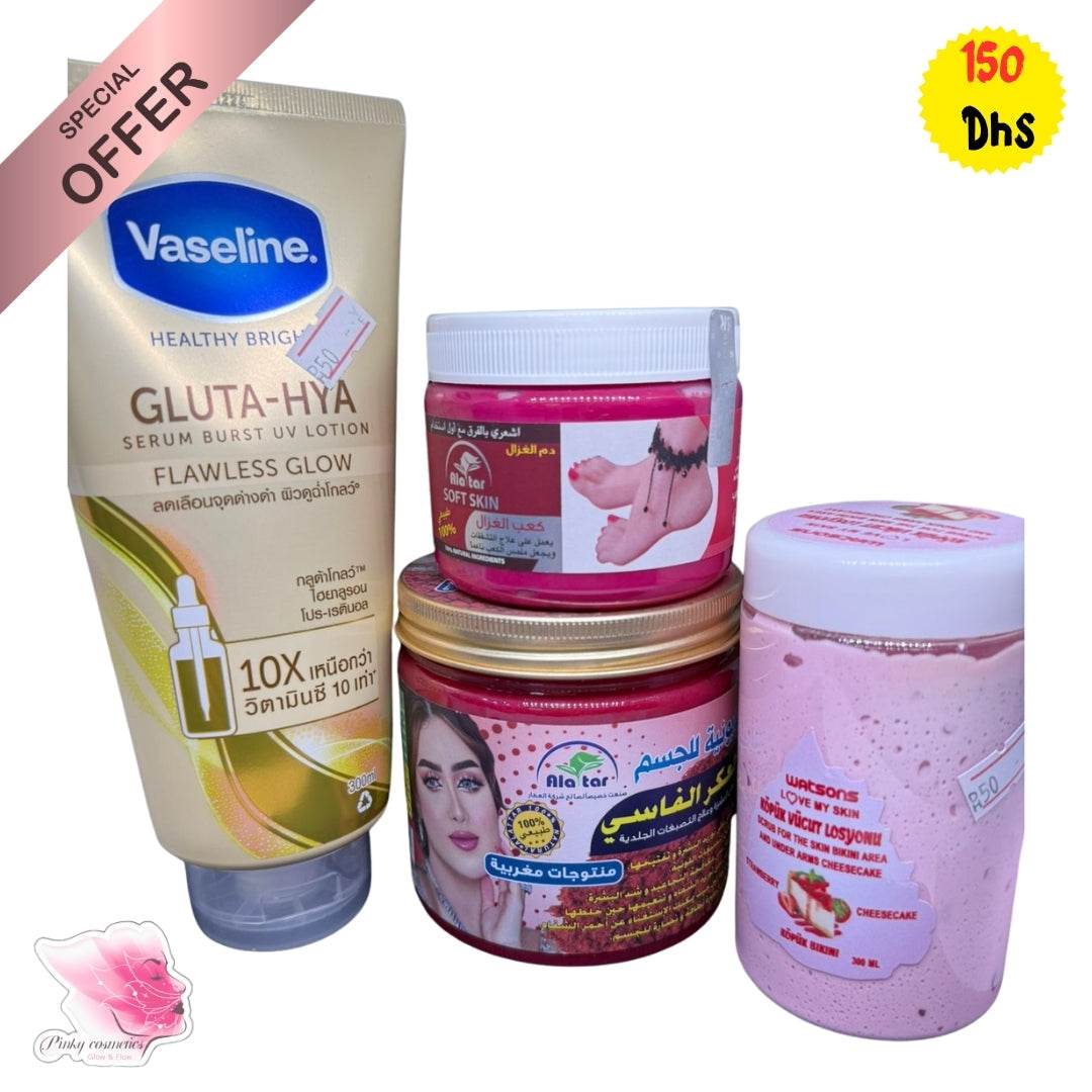 🌟 غيّر روتين العناية بالبشرة لديك مع مجموعة التوهج المغربي هذه - التي تجمع بين الترطيب العميق والتقشير والتفتيح للحصول على بشرة مشرقة في نهاية المطاف! 💖