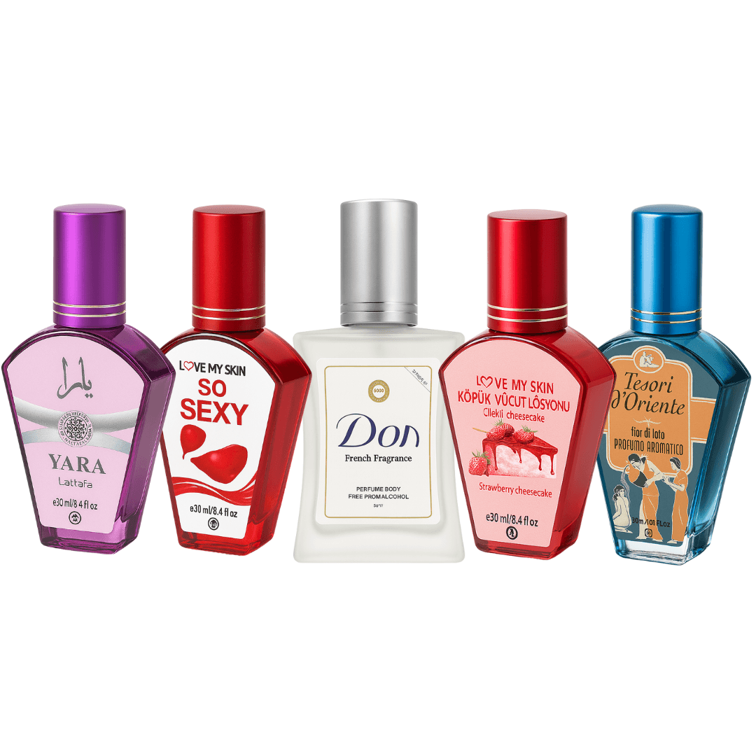 تشكيلة عطور فاخرة 💎 - اختر من بين 5 عطور فاخرة من علامات تجارية عالمية، منها لطافة، يارا، لوف ماي سكين، دون فرينش فراجرنس، وتيسوري دورينت. مثالية لمن يقدرون الروائح الأصيلة والجودة العالية، ويرغبون في اختيار عطرهم الخاص.