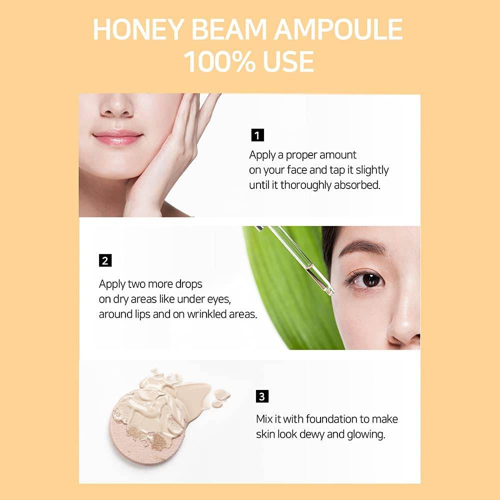 تحتوي أمبولة هاني بيم على ١٠٠٠٠ جزء في المليون من خلاصة غذاء ملكات النحل، والبروبوليس، والعسل، والجينسنغ. هذه المكونات مجتمعةً تُساعد على تبييض البشرة وعلاج التجاعيد. كما تُرطب البشرة لمنحكِ إشراقة مثالية. طريقة الاستخدام: ضعي كمية مناسبة على البشرة وربتيها برفق حتى تمتصها البشرة.