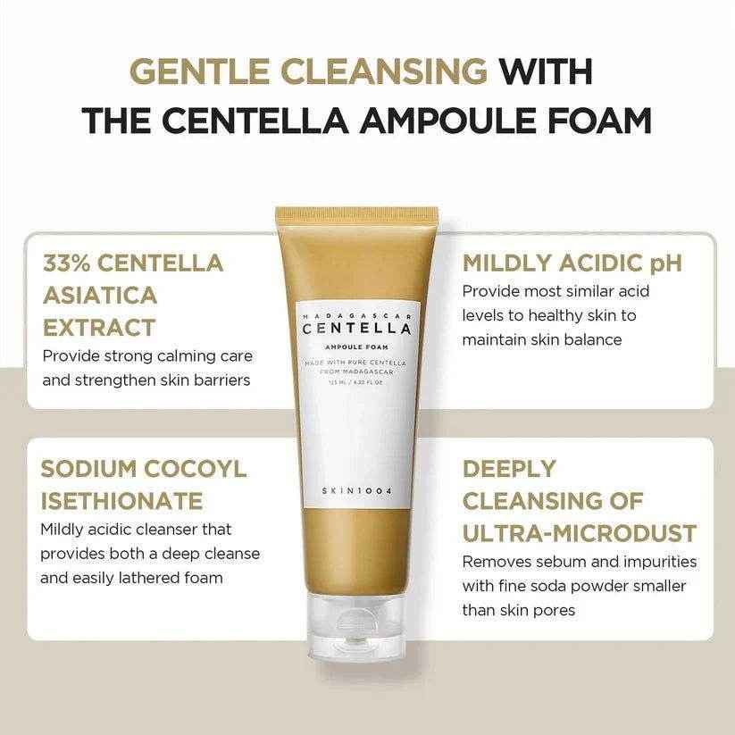 رغوة أمبولة سنتيلا مدغشقر من SKIN1004 هي منظف لطيف وفعال، غني بفوائد سنتيلا آسياتيكا المهدئة من مدغشقر. مثالي للبشرة الحساسة والمعرضة لحب الشباب، فهو ينظف بعمق مع الحفاظ على رطوبة البشرة.