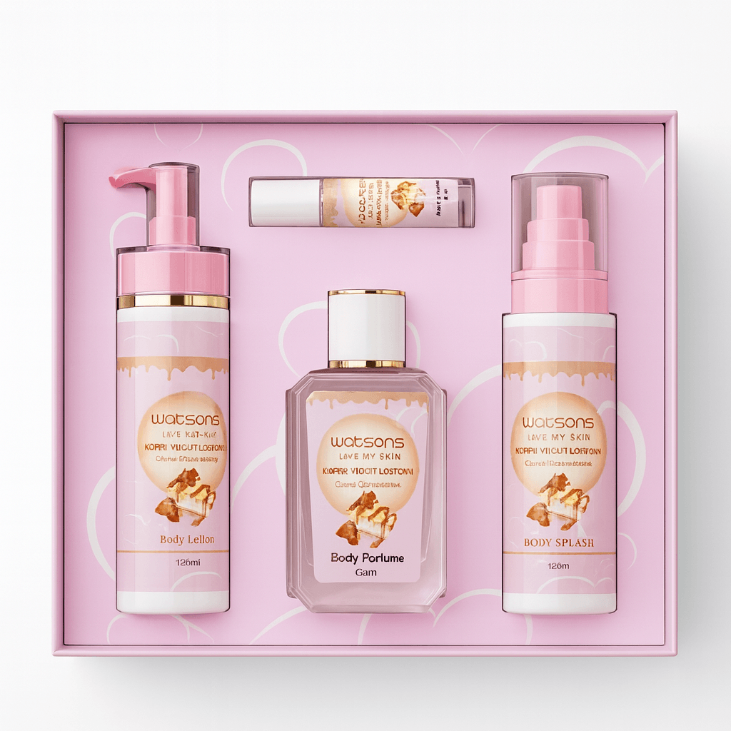 🍓 Indulge your senses with the deliciously sweet Watsons Love My Skin Strawberry Cheesecake Gift Set! This complete 4-piece collection wraps your skin in the irresistible gourmand scent of strawberry cheesecake, leaving it soft, hydrated, and beautifully fragrant. It's the perfect treat for yourself or a delightful gift for someone special. 🍰