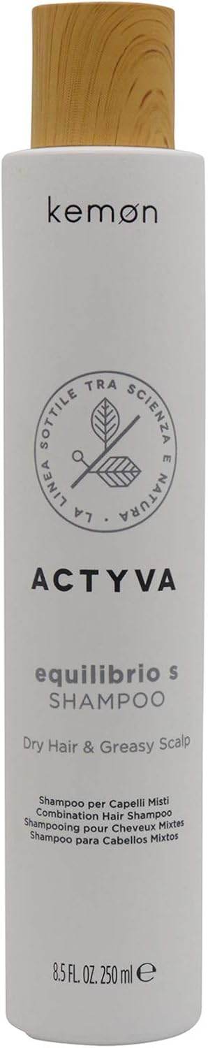 Kemon's Actyva Equilibrio S Shampoo is a professional-grade unisex shampoo specifically formulated for those with greasy scalp and dry, sensitised hair. This balancing formula effectively removes excess oil from the scalp while nourishing and softening the hair lengths, restoring a healthy hydro-lipidic balance.