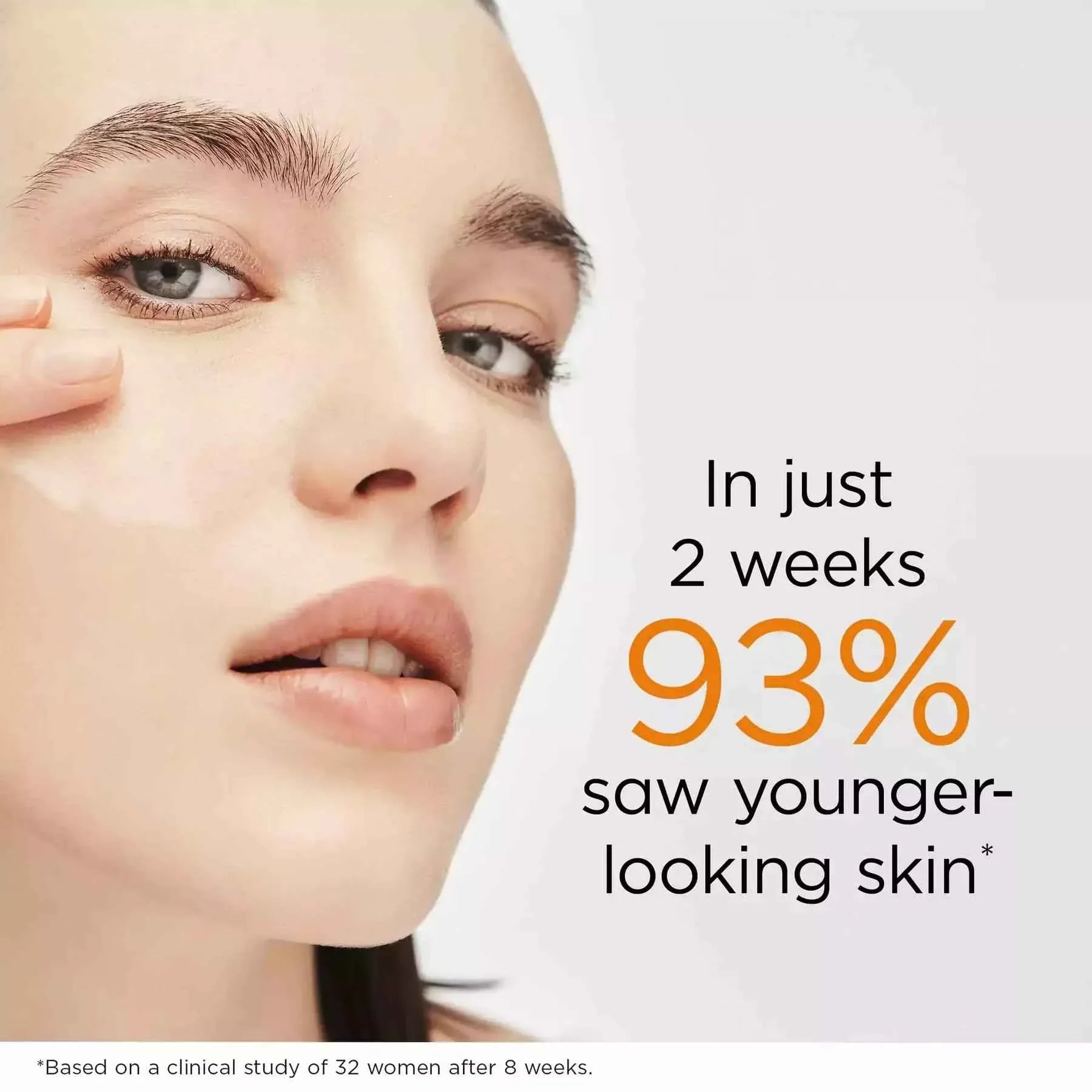 After just 4 weeks of daily use, clinical studies showed 100% of women saw an improvement in overall skin appearance. Witness the visible reduction in fine lines and the emergence of a brighter, more resilient complexion that defies time.