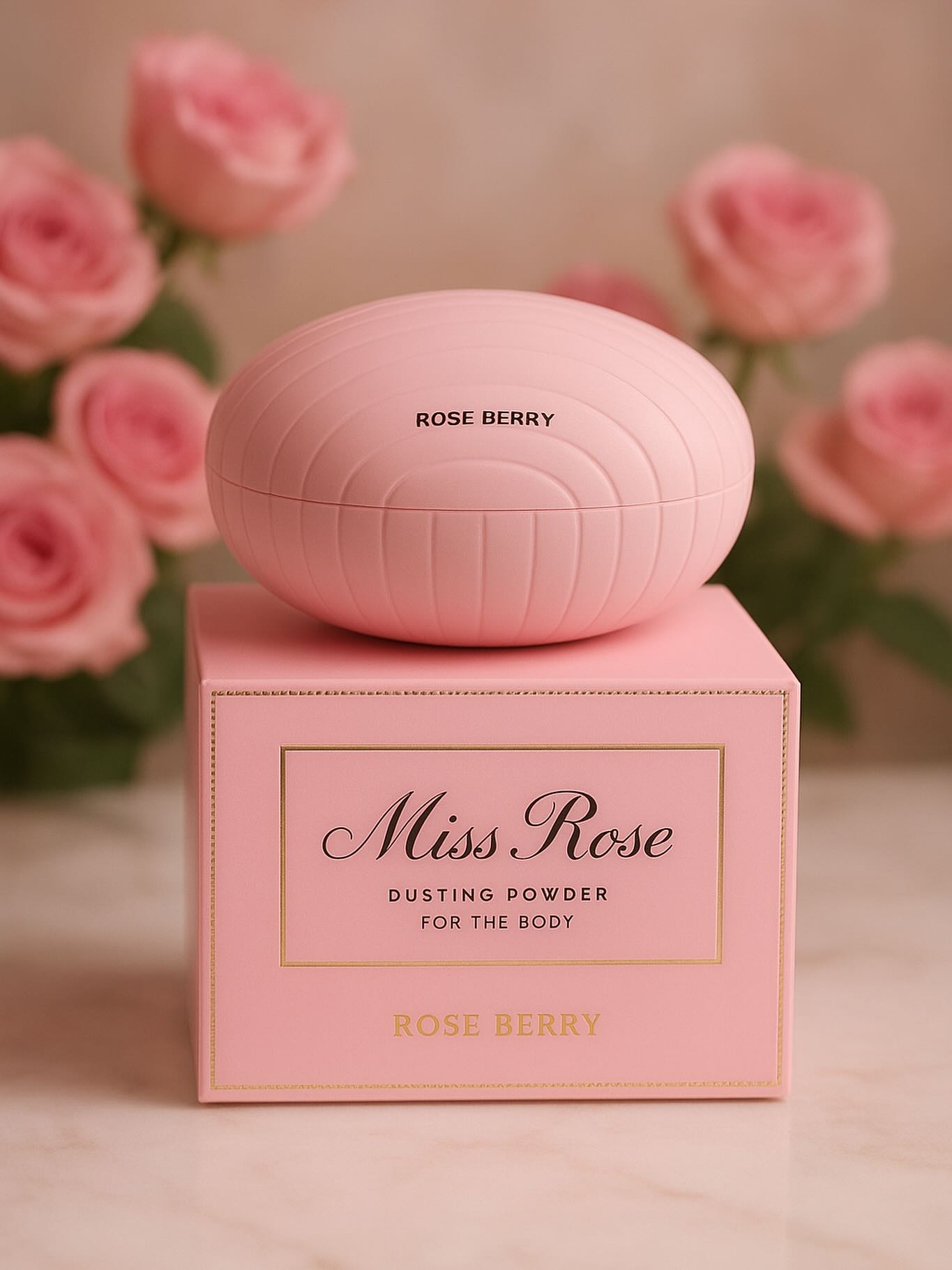 The Rose Berry Miss Rose body powder 🌸 is designed for women who love a touch of luxury — a silky powder with a classic fragrance. This revolutionary Rose Berry Miss Rose body powder combines a fine, soft texture with the timeless scent of Miss Dior for superior performance. Enriched with skin-softening agents, it delivers a smooth, matte finish and a lasting scent with ease. Skin feels velvety, fresh, and beautifully perfumed all day long.